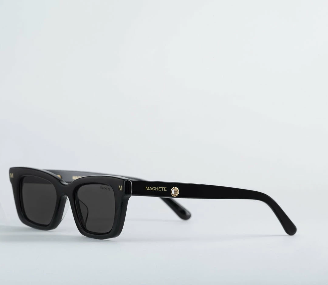 This ‘90s inspired rectangular frame in Machete’s signature show-stopping acetate brings the chic style of this iconic decade to the modern era. Handcrafted from the most environmentally friendly and highest-quality acetate on the market today to ensure your frames will not only last but be kind to the planet as well. A gold Machete logo, hardware as well as a ring for your eyeglass chain at the temples.