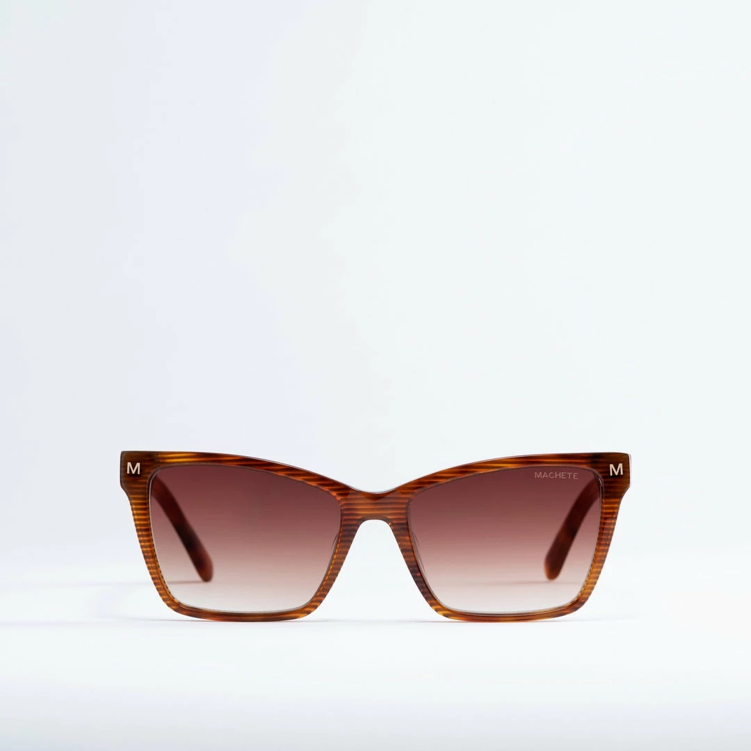 With a subtle cat-eye shape and sharp-edged frame, Sally hits the mark at all angles. Handcrafted from the most environmentally friendly and highest-quality acetate on the market today to ensure your frames will not only last but be kind to the planet as well. Adorned with a gold Machete logo and hardware as well as a ring for your eyeglass chain at the temples.