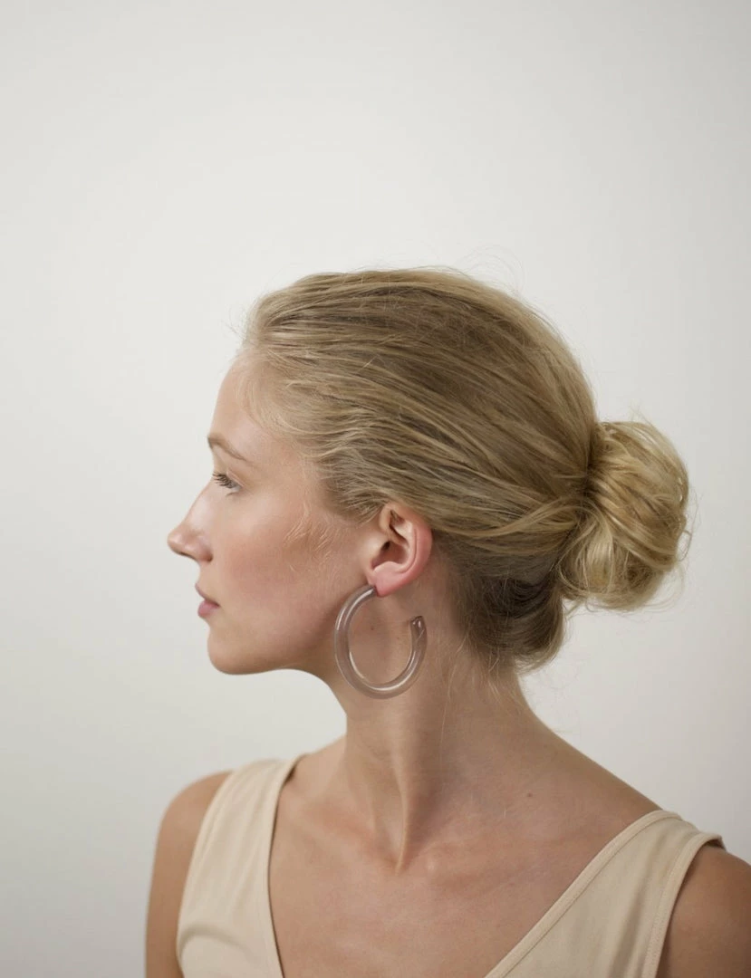 A Machete best seller, our Form hoops always make an impression. The model is wearing the Form Hoops in Lucite.