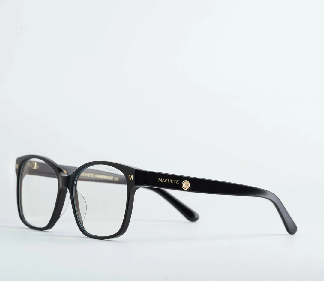 Handcrafted from the most environmentally friendly and highest-quality acetate on the market today, Jenny is a truly classic frame with a slightly oversized shape reminiscent of ‘70s style. Adorned with a gold Machete logo and hardware as well as a ring for your eyeglass chain at the temples.