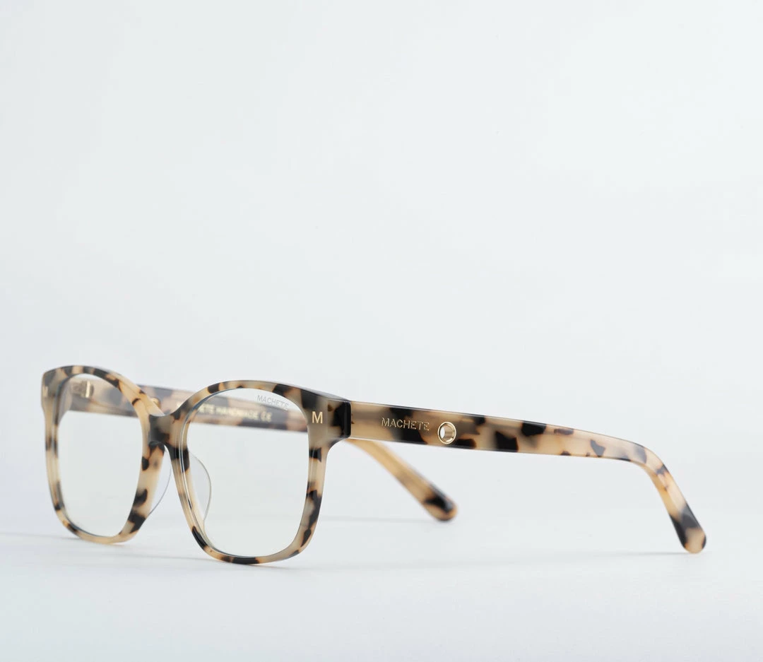 Handcrafted from the most environmentally friendly and highest-quality acetate on the market today, Jenny is a truly classic frame with a slightly oversized shape reminiscent of ‘70s style. Adorned with a gold Machete logo and hardware as well as a ring for your eyeglass chain at the temples.