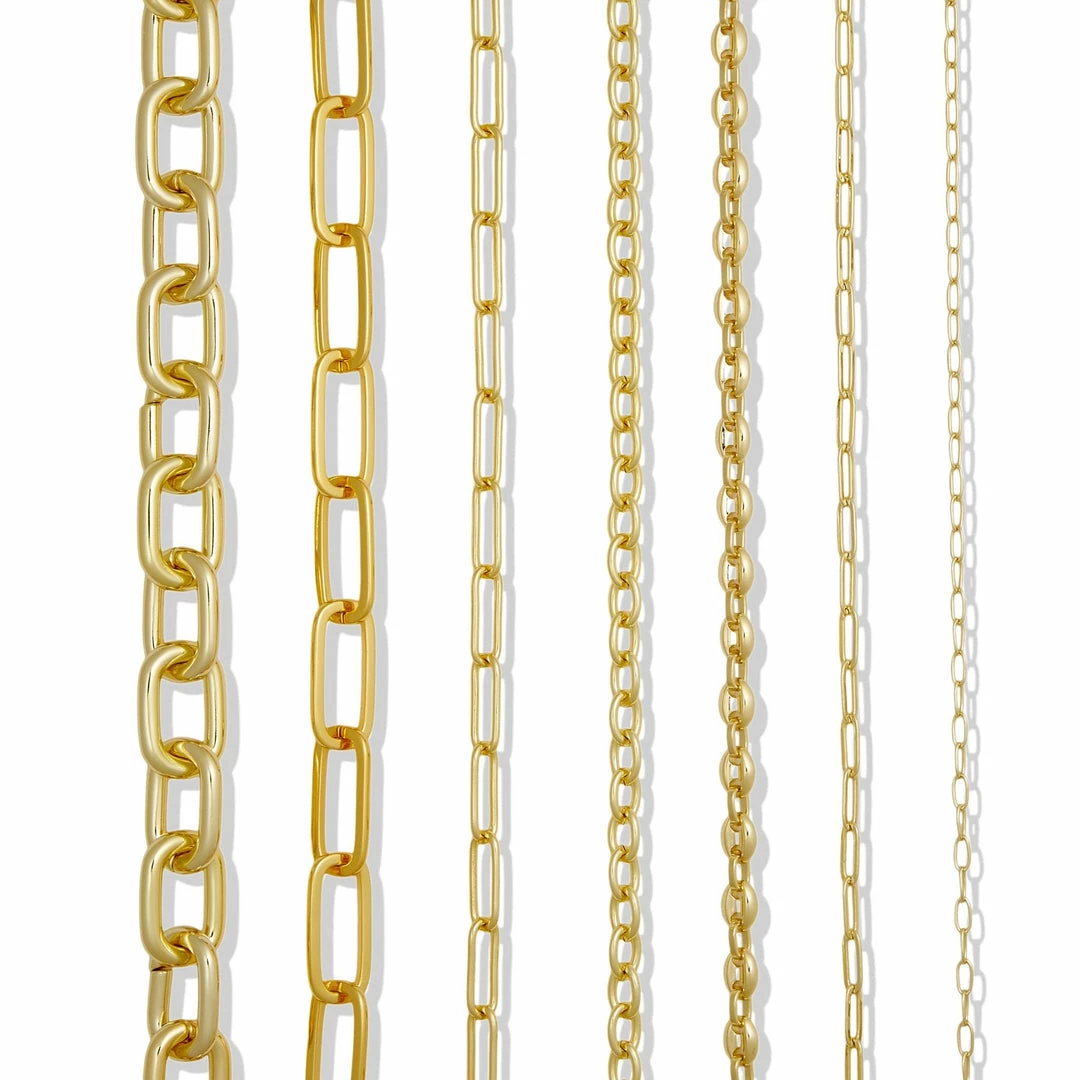 Delicate paperclip chain necklace with a slim, modern chainlink design. Additional image shows all of our chain-link styles side by side.