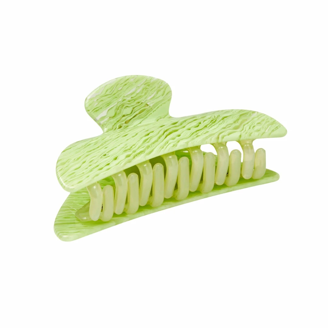 The model wears our Midi Heirloom Claw in Stromanthe.