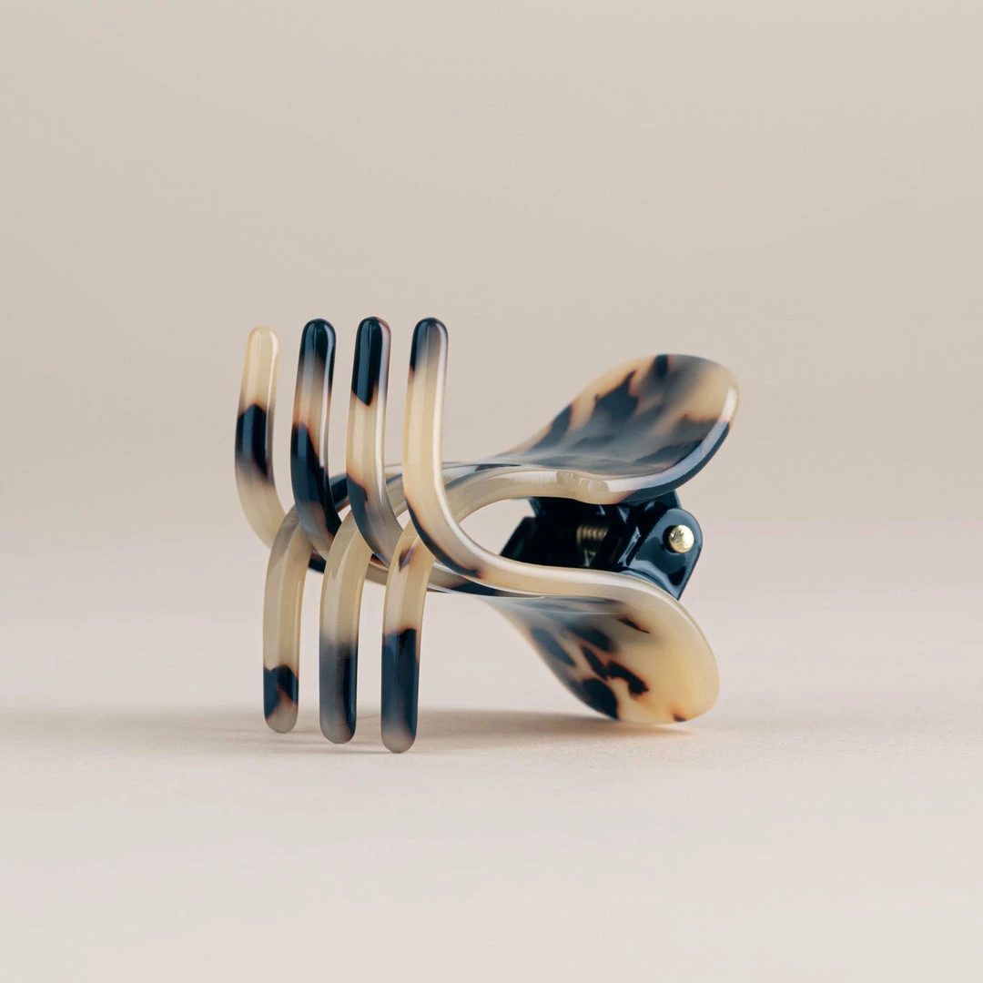 The model wears 2 of our Mini Claws in Canyon Brown.