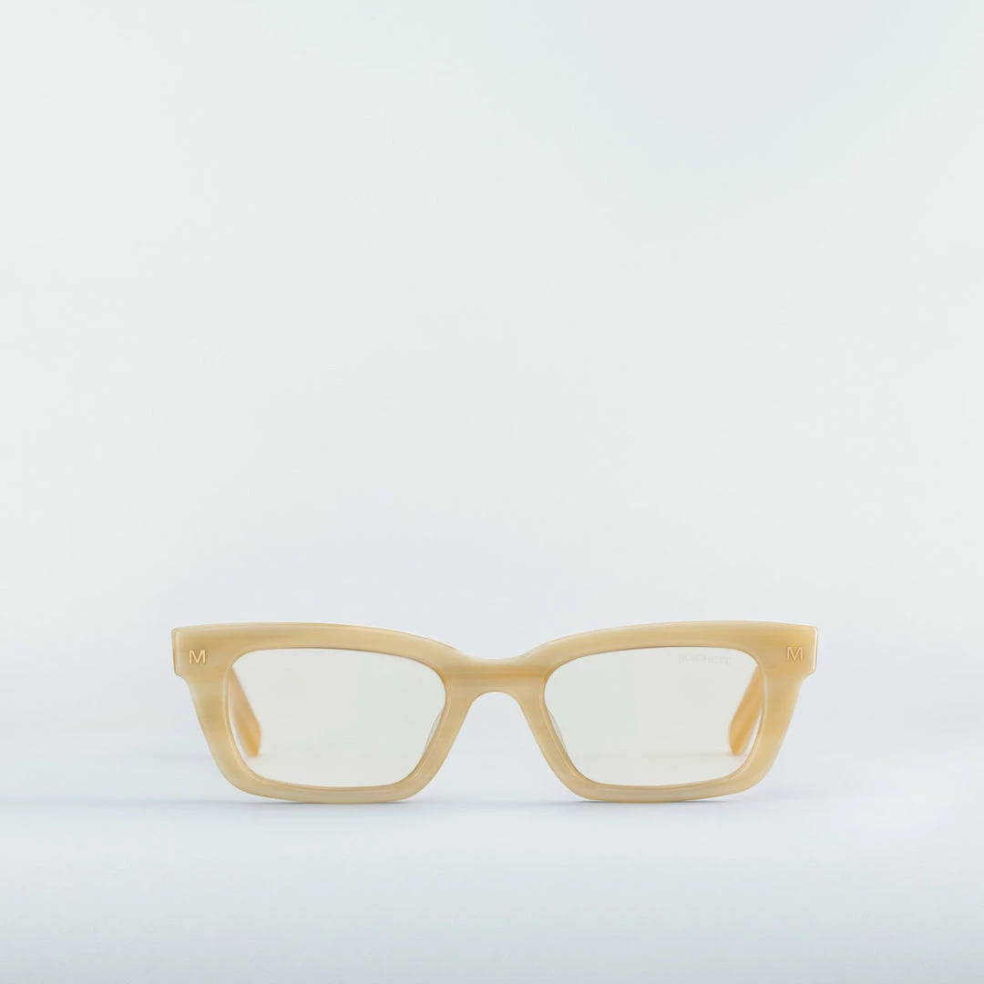 This ‘90s inspired rectangular frame in Machete’s signature show-stopping acetate brings the chic style of this iconic decade to the modern era. Handcrafted from the most environmentally friendly and highest-quality acetate on the market today to ensure your frames will not only last but be kind to the planet as well. A gold Machete logo, hardware as well as a ring for your eyeglass chain at the temples.