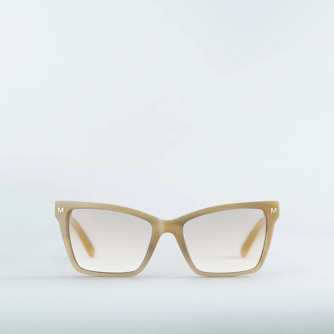 With a subtle cat-eye shape and sharp-edged frame, Sally hits the mark at all angles. Handcrafted from the most environmentally friendly and highest-quality acetate on the market today to ensure your frames will not only last but be kind to the planet as well. Adorned with a gold Machete logo and hardware as well as a ring for your eyeglass chain at the temples.